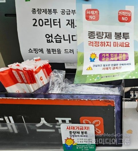 울주군시설관리공단 관계자는 “종량제봉투는 생활 필수품인 만큼 수요 급증 시 공급 불안이 발생할 수 있다”며, “사재기 방지 홍보를 통해 합리적인 소비를 유도하고 안정적인 공급 체계를 유지하는 데 최선을 다하고 있다”고 밝혔다.