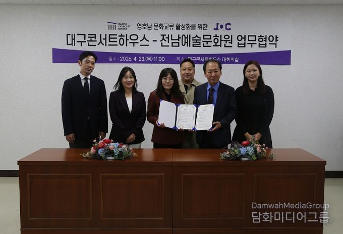 시민행정신문 기자 | 대구문화예술진흥원 대구콘서트하우스는 4월 23일 전남예술문화원(대표 마윤미)과 영호남 문화교류 활성화를 위한 업무협약을 체결했다.
