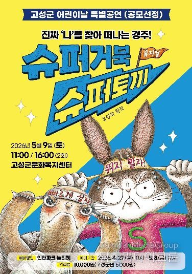 시민행정신문 강갑수 기자 | 평화 경제 거점 도시 강원 고성군은 어린이날을 기념하여 온 가족이 함께 즐길 수 있는 가족 뮤지컬 '슈퍼거북 슈퍼토끼'를 오는 5월 9일 고성군 문화복지센터에서 개최한다.