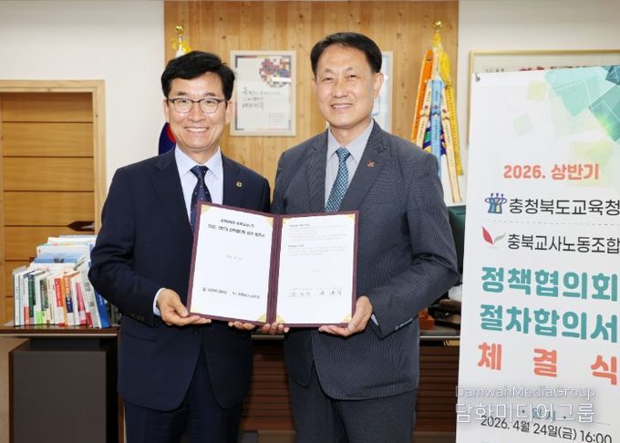시민행정신문 기자 | 충청북도교육청은 24일 오후 4시, 교육감 집무실에서 충북교사노동조합(위원장 유윤식)과 '2026. 상반기 정책협의회 절차합의서'를 체결했다.
