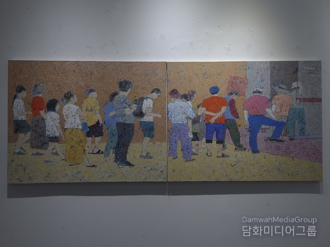 화면 표면에 남겨진 얼룩과 점묘적 리듬은 사람들의 웅성거림, 시선의 이동, 시장과 거리의 숨결 같은 일상의 소음을 시각적 감각으로 번안한다.