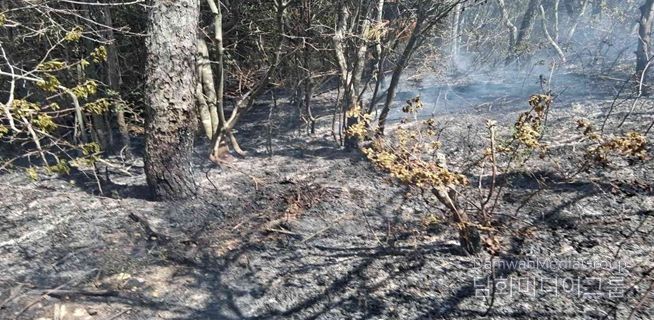 산림당국은 불이나자 산림청 진화헬기 1대와 지자체 임차헬기 1대 및 산불진화차량 2대, 산림재난대응단 10명 등 산불전문인력을 투입하여 진화 작업을 벌이고 있다.