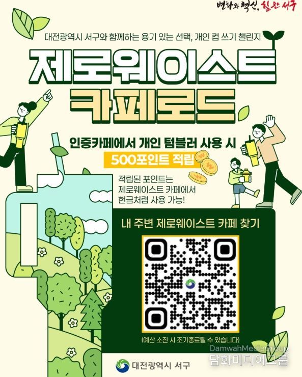 시민행정신문 김학영 기자 | 개인 컵 지참 시 포인트 500원이 적립되는 대전 서구의 ‘착한 카페’가 속속 늘어난다.