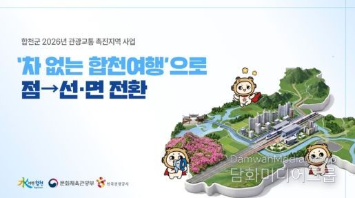 시민행정신문 이세훈 기자 | 합천군은 문화체육관광부와 한국관광공사가 주관하는 ‘2026년 관광교통 촉진 지역 공모사업’에 최종 선정돼 총사업비 8억 원을 확보했다.