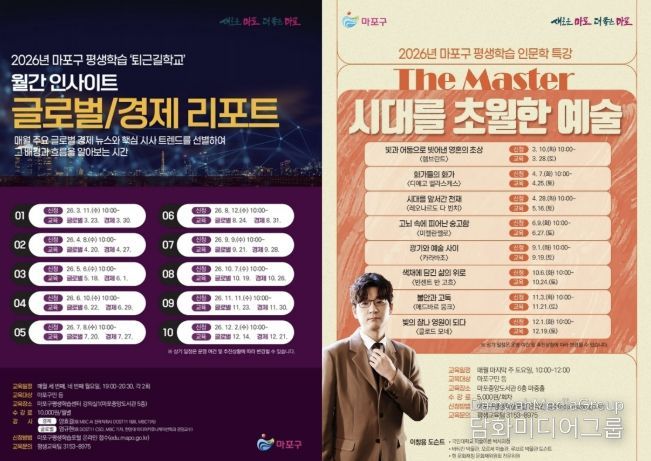 마포구 관계자는 “구민이 일상 속에서 쉽게 배움에 참여할 수 있도록 다양한 평생교육 프로그램을 운영하고 있다”라며, “구민 여러분의 많은 관심과 참여 속에 배움이 일상에서 자연스럽게 이어지길 바란다”고 말했다.