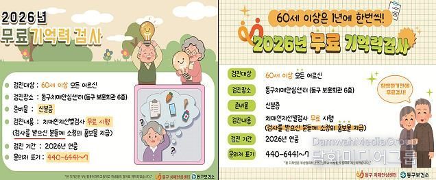 협업의 첫 결과물은 동구보건소(건강증진과)에서 추진하는 ‘2026년 무료 기억력 검사’ 홍보 포스터다.