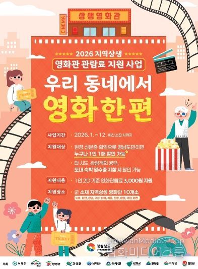 시민행정신문 기자 | 거창군은 다가오는 5월 가정의 달을 맞이해 군민들의 문화 향유 기회를 확대하고 지역 영화관의 활성화를 돕기 위해 ‘2026년 지역상생 영화관 관람료 지원사업’을 시행한다.