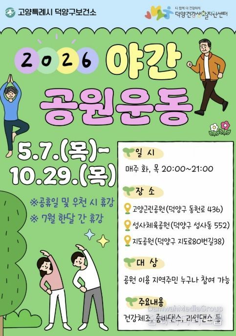 시민행정신문 기자 | 고양특례시 덕양구보건소는 오는 5월 7일부터 야간공원 운동교실을 운영한다.