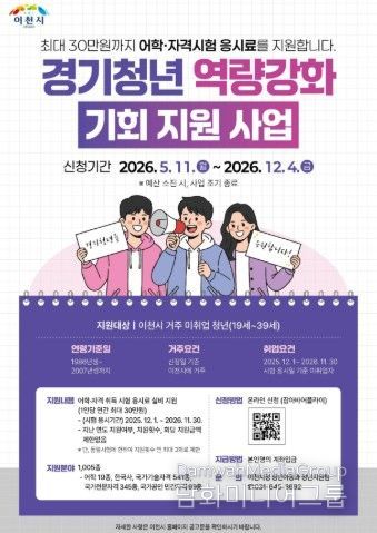 시민행정신문 이세훈 기자 | 이천시가 오는 5월 11일부터 미취업 청년의 어학·자격시험 응시료를 지원하는 ‘경기청년 역량강화 기회지원 사업’ 대상자 모집에 들어간다.
