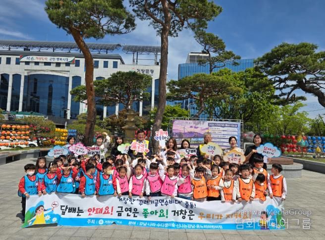 시민행정신문 기자 | 거창군 보건소는 28일 거창로타리에서 강남·나라·신나는강남어린이집 3개소 원아 60여 명이 참여해 ‘담배는 안돼요’를 주 슬로건으로 금연 캠페인을 펼쳤다.