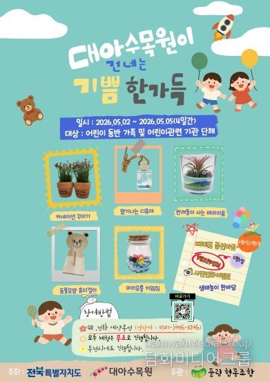 황상국 전북자치도 산림환경연구원장은 “이번 행사를 통해 어린이들이 자연과 친숙해지고 가족과 함께 소중한 추억을 만드는 시간이 되길 바란다”며 “앞으로도 수목원을 활용한 다양한 체험 프로그램을 확대해 나가겠다”고 말했다.