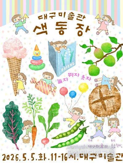 시민행정신문 강갑수 기자 | 대구미술관은 가정의 달을 맞아 5월 5일 온 가족이 예술 안에서 즐겁게 소통할 수 있는 특별 이벤트 ‘놀자, 뛰자, 웃자-색동장’을 개최한다. 이날 미술관은 무료로 개방되며, 전시 관람부터 체험, 장터까지 다채로운 프로그램이 펼쳐진다.