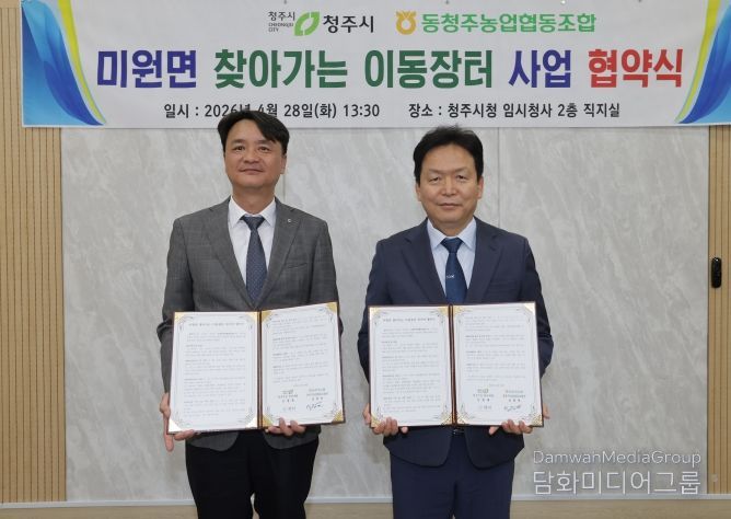 협약에 따라 시는 시 소유 3.5톤 탑형 특장 차량을 제공하고 운영비를 지원한다. 동청주농협은 오는 5월부터 2027년 12월까지 이동장터 운영과 차량 관리를 전담한다.