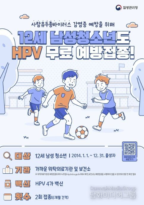 현재 HPV 국가예방접종 지원 대상은 12~17세 여성청소년(2008~2014년생)과 18~26세 저소득층 여성(1999~2007년생)이며, 이번 확대에 따라 2014년생 남아도 HPV 예방접종을 무료로 받을 수 있다.