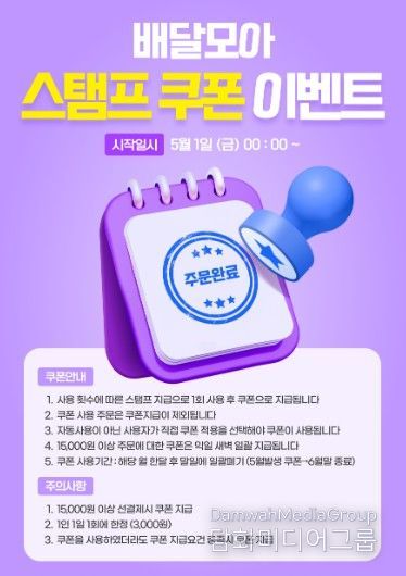 이번 이벤트는 5월 1일부터 배달모아 이용자 선착순 5,000명을 대상으로, 다음 주문 시 사용할 수 있는 3,000원 할인 쿠폰을 지급하는 방식으로 운영된다.