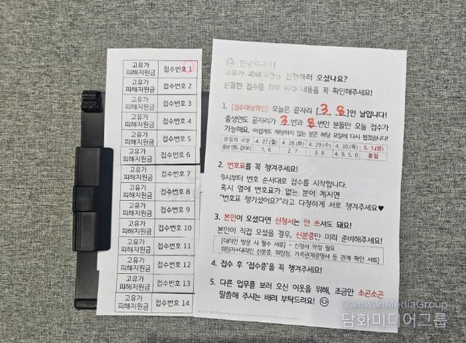 오학동은 최근 ‘고유가 피해지원금’ 신청이 시작됨에 따라, 업무 개시 전부터 대기하는 주민들을 위해 대기 공간에 배려가 담긴 안내 편지를 비치했다.