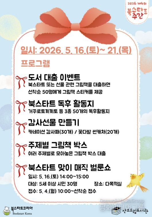 시민행정신문 강갑수 기자 | 태백시 산소드림도서관은 2026년 북스타트 주간 지원사업 공모에 선정되어 ‘선물’을 주제로 오는 5월 16일부터 5월 21일까지 북스타트 주간을 운영한다.