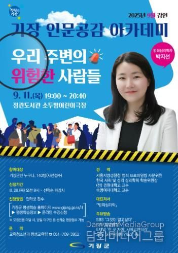 한편, 기장 인문공감 아카데미는 기장군민이면 누구나 무료로 참여할 수 있다.
