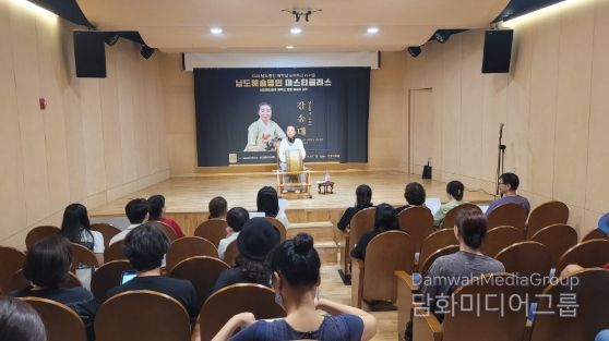 이번 남도명인예학당은 ▲서화(문인화, 한국화) ▲소리(강강술래, 남도잡가, 닻배노래, 엿타령) ▲북놀이 ▲씻김굿(장단, 소리) 등 전통예술의 핵심 분야를 아우르는 명인들이 진행하는 교육이며, 실기 중심의 심화 교육으로 구성됐다.