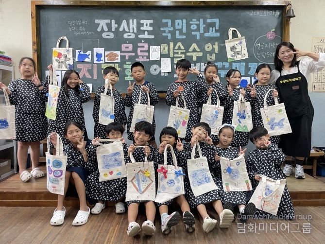 장생포 국민학교 무료 미술수업은 보호자가 함께 참석한 가운데 만 7세 이상의 어린이를 대상으로 매주 주말에 열리며 종이판화, 슬라임, 석고 등 다양한 소재를 활용해 어린이들의 창의력을 키우는 데 중점을 두고 있다.