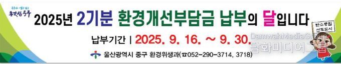 시민행정신문 강갑수 기자 | 울산 중구가 2025년 2기분 환경개선부담금 4,410건, 2억 7,000여만 원을 부과했다.