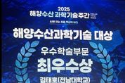 시민행정신문 강갑수 기자 | 전남대학교 김태호 교수(해양생산관리학과)가 해양수산부가 주최하고 해양수산과학기술진흥원이 주관한 ‘2025 해양수산과학기술대상’에서 우수학술부문 최우수상을 수상했다. 시상식은 12월 2일 서울 양재동 aT센터에서 열린 2025 해양수산과학기술주간 행사에서 진행됐다. 7일 전남대에 따르면, 김 교수는 해양수산부의 수산전문인력양성사업(스마트수산양식연구센터)의 지원을 바탕으로 다기능성 키토산 하이드로겔 기반 양식장 수질정화 기술 개발을 개발해 암모니아성 질소(TAN) 및 아질산(NO₂) 제거 효율을 획기적으로 향상시키는 성과를 거두며 높은 평가를 받았다. 해당 하이드로겔은 20회 이상 재사용 가능한 친환경 소재로, 기존 응집제 대비 처리 속도 및 운영비 절감 효과가 뛰어난 기술이다. 또한 스마트 RAS(순환여과식 양식 시스템) 운영과 연계돼 AI 기반 수질 예측–저환수–탄소저감 운영까지 확장 가능한 차세대 수처리 플랫폼 기술로 평가받고 있다. 김 교수는 이 기술을 기반으로 SCIE 논문 5편 (mrn IF 평균 90.06), 특허 등록 5건, 기술이전 5건, 석·박사급 전문 인
