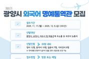 시민행정신문 강갑수 기자 | 광양시가 국제교류 현장에서 활동할 ‘제8기 외국어 명예통역관’을 모집한다. 광양시 외국어 명예통역관은 시의 국제화 정책 추진과 각종 국제교류 활동을 지원하는 역할을 맡는다. 주요 활동 분야는 국제행사, 해외 방문단 의전, 청소년 국제교류 등에서의 통역 및 안내 업무 수행으로, 시의 요청에 따라 통역에 참여할 경우 '광양시 통역관 위촉 및 운영 규정'에 따른 소정의 통역수당이 지급된다. 제8기 모집 인원은 총 35명(영어 12명, 중국어 10명, 일본어 7명, 기타 언어 6명) 내외이며, 지원 자격은 광양시를 비롯해 순천·여수·하동 등 인근 지역 거주자 중 외국어 능통자 또는 한국어가 능숙한 외국인이다. 선발된 명예통역관은 2026년 1월부터 2027년 12월까지 2년간 활동한다. 신청 접수 기간은 11월 17일부터 12월 5일까지 3주간이다. 희망자는 시 누리집 공고·공지사항에서 신청서를 내려받아 작성한 뒤 이메일로 제출하거나, 광양시 철강항만과 국제협력팀을 방문해 제출하면 된다. 정승재 철강항만과장은 “글로벌 교류가 확대되는 흐름 속에서 전문 통역 인력의 중요성이 더욱