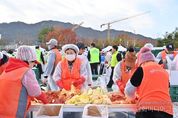 시민행정신문 강갑수 기자 | 충남도 내 자원봉사자들이 지난해에 이어 올해도 김장김치를 나누며 소외된 이웃들에게 따듯한 온정의 손길을 전했다. 도는 18일 도청 남문 다목적광장에서 김태흠 지사와 정광섭 도의회 부의장, 장영기 도 자원봉사센터 이사장, 자원봉사자, 유관기관 등 700여 명이 참석한 가운데 ‘2025 충남도 자원봉사 김장대축제’ 행사를 개최했다. 올해로 2회째를 맞은 이번 행사는 자원봉사 유관기관들로 구성된 온기나눔 범도민 추진본부 주관으로, 소외된 이웃을 위한 나눔문화를 확산하기 위해 마련했다. 참석자들은 ‘함께하는 자원봉사, 함께하는 충청남도’라는 슬로건 아래 이날 하루 동안 김장김치 1만 7000kg(약 6800포기, 1700상자)를 담갔다. 자원봉사자들의 사랑이 담긴 김장김치는 시군 자원봉사센터를 통해 홀몸어르신, 장애인가구, 한부모가정 등 도내 취약계층에 전달될 예정이다. 김태흠 지사는 “15개 시군 자원봉사자 여러분이 모여, 도가 하나로 뭉친 것 같아 뜻깊다”며, “오늘 김장대축제를 통해 따뜻한 정을 나누는 계기가 되고, 어려운 이웃을 챙기는 문화로 더 크게 확산