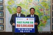 시민행정신문 강갑수 기자 | 전남 곡성군은 지난 17일 여수시 화장동에 소재한 (유)용수종합건설(대표 우정욱)에서 곡성군 노인맞춤돌봄서비스 이용 어르신을 지원하기 위해 현금 500만 원을 기탁했다고 18일 밝혔다. 이번 기부금은 노인맞춤돌봄서비스 지원사업 수행기관인 곡성노인맞춤돌봄센터에서 돌봄서비스를 제공받는 912명의 어르신을 대상으로 추진되는 프로그램 운영에 활용될 예정이다. 기탁식에는 우정욱 대표를 포함하여 3명이 참석했으며, 우정욱 대표는“일상생활 영위가 어려운 취약 어르신들에게 적절한 돌봄서비스가 제공될 수 있도록 작은 정성을 보탤 수 있엉 매우 뜻깊다”라며, “앞으로도 지속적인 나눔 활동을 이어가겠다”라고 덧붙였다. 조상래 곡성군수는“어려운 경기 상황에서도 지역사회 취약 어르신들에게 온정을 베풀어 주신 용수종합건설 우정욱 대표에게 깊은 감사의 뜻을 표하며, 기부금이 노인맞춤돌봄서비스 대상 어르신들에게 잘 활용될 수 있도록 하겠다”라고 전했다.