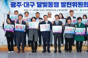 시민행정신문 강갑수 기자 | 광주광역시와 대구광역시가 18일 시청 3층 소회의실에서 ‘광주·대구 달빛동맹 발전위원회’를 열어 두 도시 간 실질적인 협력 강화 방안을 논의했다. 이날 회의에서는 기존 공동 협력과제의 추진 상황을 공유하고, 신규 협력과제 심의와 정부·국회에 전달할 메시지 퍼포먼스를 진행했다. 두 도시는 지난 9월17일 국회에서 오랜 숙원사업인 달빛철도 건설사업의 예비타당성조사 면제를 촉구하는 공동선언문을 발표했다. 이어 군공항 조기 이전, 식품·뿌리·의료·로봇산업 내 특별관 운영, 달빛동맹 자원봉사 교류, 문화예술 교류 등 5개 분야 35개 과제에 대해 지속 협력했다. 이날 회의에서는 달빛동맹의 협력 강화를 위해 지난달 15일 실무회의에서 논의됐던 신규 과제 11건을 심의·의결했다. 주요 신규 협력과제는 ▲광주・대구 AX 거점도시 조성 ▲AI 융합 핵심인재 공동 양성 ▲미래모빌리티산업 육성 공동과제 발굴 ▲‘5극3특 전략’ 실현을 위한 공공기관 2차 이전 등이다. 고광완 행정부시장은 “이번 회의는 달빛동맹의 실질적 협력을 더욱 구체화하는 계기가 됐다”며 “앞으로도 두 도시가