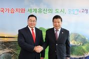 시민행정신문 이세훈 기자 | 고성군은 10월 16일 군수실에서 이상근 군수와 차강 웁궁 자담바 주부산 몽골 영사가 만나 제6회 고성독수리 생태축제 및 한·몽 교류 협력 방안을 논의했다고 밝혔다. 이번 만남은 독수리 보호와 생태관광 네트워크 구축, 한국 거주 몽골 교민의 고성군 방문 추진 등 실무 협의의 일환으로 마련됐다. 이상근 군수는 차강 웁궁 자담바 영사에게 오는 12월 6일부터 7일까지 열리는 ‘제6회 고성독수리 생태축제’에 참석해 줄 것을 요청했으며, 공룡 발자국 화석으로 유명한 고성군과 진품 공룡 화석을 다수 보유한 몽골 간의 과학·교육 교류 방안도 함께 논의했다. 차강 웁궁 자담바 영사는 이날 2025년 경남 고성 공룡세계엑스포 행사장을 방문해 고성군의 문화·관광 인프라를 둘러보고, 향후 양국 간의 문화 교류 확대 가능성에 대한 의견을 나눴다. 이상근 고성군수는 “고성과 몽골은 독수리와 공룡이라는 자연의 유산으로 연결된 소중한 인연”이라며, “이번 방문으로 양국의 우호가 더욱 깊어지고, 고성군이 국제적인 생태·문화도시로 성장할 수 있는 계기가 되길 바란다”라고 말했다.