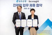 시민행정신문 이세훈 기자 | 광주은행은 15일, 라이프케어 전문기업 비즈인사이트(대표 김상수)와 전략적 업무 제휴 협약을 체결했다고 밝혔다. 이번 협약은 양사가 긴밀한 협력 체계를 바탕으로 금융과 라이프케어를 결합한 전용 상품 및 서비스 개발과 공동 마케팅 추진 등 다각적인 제휴를 통해 새로운 디지털 금융 서비스를 선보이기 위한 목적이다. 이날 협약식에는 광주은행 변미경 디지털본부 부행장과 비즈인사이트 김상수 대표가 참석했으며, 변화하는 디지털 환경 속에서 양사가 상호 시너지를 창출하고, 고객 중심의 혁신 서비스를 지속적으로 확대해 나가겠다는 뜻을 모았다. 특히, 양사는 이번 제휴를 통해 전용 상품 및 서비스 개발, 공동 마케팅 등 차별화된 협력 방안을 추진하여, 디지털 전환이 가속화되는 환경 속에서 고객 만족도를 높이는데 주력한다는 방침이다. 한편, 광주은행과 비즈인사이트는 지난 9월 25일부터 ‘와이즈한 웰니스 라이프의 시작’ 이벤트를 진행 중이다. 해당 이벤트는 광주은행 계좌로 급여 또는 연금을 신규 수령하거나, 기존 타행에서 광주은행으로 입금 계좌를 변경한 고객을 대상으로 진행되며, 비즈인