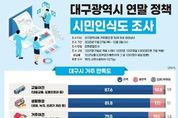 시민행정신문 이세훈 기자 | 대구광역시는 지난해 11월 27일부터 12월 3일까지 만 18세 이상 대구시민 1,001명을 대상으로 시정 전반에 대한 ‘시민인식도 조사’를 실시했다. 이번 조사는 시민들의 다양한 의견을 파악해 향후 시정 운영과 주요 정책 수립에 활용하기 위한 것으로, ▲대구시 거주 만족도 ▲대구시가 역점 추진해야 할 분야 및 핵심사업 우선순위 ▲재정운영 대책 ▲시정 성과 만족도 등을 중심으로 조사했다. 주요 결과는 다음과 같다. 먼저, 대구시 거주 만족도와 관련해 교통, 교육, 생활물가, 거주여건, 경제여건, 문화체육관광 여건, 생활환경 등 시민 삶의 질과 관련된 7개 분야 만족도를 조사한 결과, 교통여건(87.6%), 생활환경(81.8%), 거주여건(79.5%) 등은 높은 만족도를 보였다. 반면 경제여건은 불만족 비율이 62.9%로, 조사 항목 중 유일하게 부정응답이 많았다. 이는 시민들이 일상생활 인프라에 대해서는 전반적으로 만족하고 있지만, 경제 상황은 어렵다고 인식하는 이중적 구조를 보여주고 있다. 다음으로, 향후 역점 추진분야 및 핵심사업에서는 대구