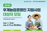 시민행정신문 이세훈 기자 | 사천시가 오는 2월 11일까지 2026년 후계농업경영인 육성사업 대상자를 모집한다고 14일 밝혔다. 신청 자격은 사천시에 거주하는 만 18세 이상 50세 미만의 예비농업인으로, 독립 경영 경험이 10년 미만이거나 독립 경영 예정자이며, 병역을 필하거나 면제된 사람이다. 사업 신청은 처세대농림사업정보시스템(농업e지)을 통해 온라인으로 가능하며, 서류 평가와 평가 검증을 거쳐 2026년 4월 중 최종 결과가 발표될 예정이다. 후계농업경영인 육성사업은 선정된 농업인에게 최대 5억원의 융자 지원을 제공하고, 선정된 후계농의 영농 경영 및 역량강화를 위한 교육프로그램도 지원한다. 자세한 사항은 사천시 홈페이지에 게시된 시행 지침을 참고하거나, 사천시 미래농업과 인력육성팀으로 문의하면 된다. 박동식 시장은 "미래 농업을 이끌어 갈 후계농업경영인들이 본 지원사업을 적극 활용해 안정적으로 영농에 정착할 수 있도록 최선을 다해 지원하겠다"고 말했다.