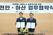 시민행정신문 이세훈 기자 | 천안시가 아산시와 손잡고 국토교통부 주관 ‘K-AI 특화시범도시’ 조성사업 유치에 본격적으로 나선다. 천안시는 지난 5일 천안아산상생협력센터에서 김석필 천안시장 권한대행 부시장과 오세현 아산시장이 참석한 가운데 ‘AI 특화 시범도시 공동 추진 업무협약’을 체결했다고 6일 밝혔다. 이번 협약은 정부의 인공지능 전환(AX) 기조에 맞춰 양 시의 공동 생활권 기반을 활용, 충청권의 강력한 AI 혁신 거점을 구축하기 위해 마련됐다. 특히 천안시는 아산시와 도시통합관제센터를 공동 운영 중인 상생 모델을 바탕으로 이번 공모에서 강력한 시너지 효과를 창출한다는 전략이다. 국토부의 ‘K-AI 특화시범도시’는 2030년까지 △GPU·NPU를 탑재한 ‘도시지능센터’ 구축 △지능형 SOC 등 AI 기반시설 확충 △기존 인프라(교통·안전·행정)의 AI 고도화 △실증 플랫폼인 ‘AI 빌리지’ 등을 추진하는 대규모 프로젝트다. 천안시는 아산과 이미 천안아산상생협력센터 내 도시통합관제센터를 공동 운영하는 등 긴밀한 협력 체계를 유지해 온 만큼, 이번 공모에서도 공동 대응을 통해 시너지
