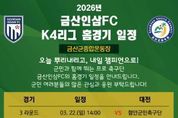 시민행정신문 장규호 기자 | 금산인삼에프씨는(FC)는 2026 시즌 케이(K)4리그 안방 사수를 위한 홈경기 일정을 전격 안내에 나섰다. 이번 안내는 군민들이 미리 경기 관람 계획을 세우고 가족·지인과 함께 경기장을 찾을 수 있도록 돕기 위해 마련됐다. 주요 일정 및 상대팀은 △3월 29일 제천시민축구단 △4월 11일 서산에프씨(FC) △5월 2일 기장군민축구단 △5월 31일 거제시민축구단 △6월 21일 진천케이알에프씨(KRFC) △7월 25일 서울중랑축구단 △8월 30일 진주시민축구단 △9월 5일 평택시티즌 △10월 10일 남양주시민축구단 △10월 31일 세종에스에이(SA)축구단 등이다. 홈경기는 군민들의 관람 편의를 위해 주말 오후 시간대에 집중적으로 배치됐다. 구단은 매번 홈경기마다 다채로운 이벤트와 공연, 지역 특산물 홍보 부스 등을 운영해 금산종합운동장을 단순한 경기장을 넘어선 군민 화합과 소통의 광장으로 만들 예정이다. 구단 관계자는 “선수들에게 가장 큰 힘은 관중석을 가득 메운 군민 여러분의 뜨거운 함성”이라며 “확정된 홈경기 일정을 꼭 확인하셔서 경기장을 찾아주시고 우리