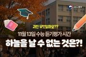 시민행정신문 장규호 기자 | 하늘을 날 수 없는 것들은? ■ 전면 통제대상 · 모든 항공기 이륙 금지 (비행 중 항공기 → 3km 이상 상공에서 대기) · 헬기 · 경량항공기 그리고 초경량 비행장치(드론 포함) 모두 STOP! * 예외: 비상·긴급 항공기 영어 듣기평가에 방해가 되는 '항공기소음 최소화' ■ 언제 통제되나요? 11월 13일(목) 13:05~13:40(총 35분) ※ 듣기평가 전·후 5분 포함 수험생에게 조용한 하늘을! 국민 여러분의 협조를 부탁드립니다.