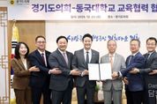 시민행정신문 기자 | 경기도의회는 23일 오전 의장 접견실에서 동국대학교와 교육협력 및 학술교류를 위한 업무협약(MOU)을 체결했다. 이날 협약식에는 김진경 의장(더민주, 시흥3)과 고준호 의원(국민의힘·파주1), 김완규 의원(국민의힘·고양12), 이병숙 의원(더민주·수원12), 박호순 의정국장이 참석했다. 동국대학교에서는 윤재웅 총장, 김용현 교무부총장, 김승용 대학원장, 유한림 BMC(바이오메디캠퍼스) 행정처장 등이 함께 자리해 협약의 의의를 더했다. 양 기관은 이번 협약을 계기로 ▲의정 발전을 위한 정보 교류 ▲전문 인재 양성을 위한 교육·연구 지원 ▲도의원 및 의회 직원 대상 대학원 장학금 지원 등 의정 활동 역량 강화를 위한 체계적인 교육 협력에 나서기로 했다. 윤재웅 총장은 “대학의 교육·연구 역량을 공유함으로써 경기도 발전에 기여할 수 있게 되어 뜻깊다”며 “경기도의회와의 지속적인 협력을 통해 실효성 있는 교육 지원을 이어갈 수 있도록 최선을 다하겠다”라고 말했다. 김진경 의장은 “의회에 대한 도민의 기대는 점점 더 복잡해지고 다양화되고 있는 만큼 의회 구성원 모두가 더