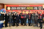 시민행정신문 기자 | 포항시의회가‘2026 포항스틸러스 시즌카드’를 구입하며 올 시즌 포항스틸러스의 선전을 기원했다. 시의회는 23일 오전 의장실에서 김일만 의장을 비롯한 이재진 부의장, 상임·특별위원장과 포항스틸러스 김상락 사장, 이종하 단장, 박태하 감독 등이 참석한 가운데 ‘2026 포항스틸러스 시즌카드’ 구입행사를 열었다. 이날 행사에서 김 의장은 “항상 포항 시민과 포항시의회는 스틸러스와 함께하고 있다”며, “올 한해도 시민들의 응원을 받아 더욱 크게 성장하는 포항스틸러스가 되길 바란다”고 응원의 말을 전했다. 이에 포항스틸러스 김상락 사장은 “시즌카드 구매에 함께 해주신 모든 분들게 감사드린다”며, “올 시즌도 지역사회의 응원과 기대에 부응할 수 있도록 철저히 준비하겠다”고 화답했다.