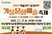 시민행정신문 기자 | 부산광역시교육청 유아교육진흥원은 오는 11월 8일 오전 10시부터 오후 3시까지 학생교육문화회관에서 부산 시내 3~5세 유아와 동반 가족 3,000여 명을 대상으로 ‘예술UP! 감성UP! 가을문화예술축제’를 개최한다. 이번 축제는 가을의 정취 속에서 공연과 체험, 자연이 어우러진 다채로운 프로그램을 통해 유아와 가족이 함께 즐기며 따뜻한 추억을 쌓을 수 있도록 마련했다. 축제는 총 4개 마당으로 구성했다. 공연마당에서는 동요와 함께하는 현악 클래식 연주, 미술 기법을 활용한 드로잉 공연 등 눈과 귀를 사로잡는 무대가 펼쳐지고, 예술창의마당에서는 자개 열쇠고리 만들기, 컵 받침 만들기, 만화경 만들기 등 예술과 과학이 결합된 체험을 통해 유아의 상상력과 창의성을 키운다. 자연마당에서는 가을 북 피크닉과 중고도서 나눔 행사가 열려 책과 자연이 어우러진 여유로운 시간을 제공하며, 어울림마당에서는 에어바운스, 전통·다문화 놀이, 먹거리 나눔 등 온 가족이 함께 참여하고 소통하는 체험형 프로그램이 운영된다. 공연 관람은 사전 신청제로 진행한다. 10월 29일 오전 9시부터 11월 6일 오후 3시까