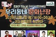 시민행정신문 기자 | 충북 괴산군은 ‘문화가 있는 날’ 주간을 맞아 오는 11월 1일 오후 6시부터 괴강불빛공원 특설무대에서 ‘문화가 있는 날 구석구석 문화배달 '우리동네 문화난장'’ 8회차 행사를 개최한다고 밝혔다. 이번 공연은 올해 마지막으로 진행되는 '우리동네 문화난장' 행사로, 깊어가는 가을밤 군민들에게 흥겨운 문화예술 향연을 선사할 예정이다. 특히 ‘내 나이가 어때서’로 널리 알려진 트로트 가수 오승근을 비롯해 쌍둥이 개그맨에서 트로트 가수로 활동 중인 상호·상민, 퓨전국악밴드 케이소리, 괴산군 홍보대사 가수 강민과 신명화, 그리고 괴산읍두레풍장놀이패의 전통놀이 공연까지 다채로운 무대가 펼쳐질 예정이다. 군은 올해 4월 괴산시장을 시작으로 청안, 칠성, 덕평, 소수 등 군내 8개 지역에서 '우리동네 문화난장'을 운영하며 전통시장, 체육관, 공원 등에서 품바, 비보이, 마술, 주민노래자랑 등 다채로운 공연을 통해 군민들의 큰 호응을 얻었다. 특히 이번 8회차는 2025년 마지막 공연인 만큼, 군은 현장을 찾은 군민들을 위해 선착순 400명에게 무릎담요를 증정할 예정이다. 김춘수