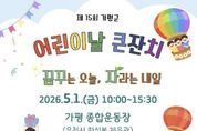 시민행정신문 기자 | 가평군은 오는 5월 1일 오전 10시 가평종합운동장에서 ‘제15회 가평군 어린이날 기념행사’를 개최한다. 가평군어린이집연합회와 가평군육아종합지원센터가 공동 주관하는 이번 축제는 기념행사와 공연, 놀이, 체험 부스 등 다채로운 프로그램으로 꾸며진다. 행사는 조종청소년오케스트라의 식전 공연으로 막을 올린다. 이어지는 본행사에서는 어린이 대표의 어린이 헌장 선언문 낭독과 군수 및 군의장의 기념사·축사, 공동 주관 기관장들의 개회 선언이 진행된다. 어린이날 유공자 및 모범어린이 6명에 대한 표창은 행사 이후인 5월 4일 가평군 월례조회 시 별도로 수여할 계획이다. 현장에는 가평경찰서, 교육지원청, 보건소 등 17개 기관과 단체가 참여해 총 26개의 체험 및 홍보 부스를 운영한다. 주요 행사는 △문화다양성 이해교육 △에코백 만들기 △장난감 수리 및 진단 등이며, 에어바운스와 페이스 페인팅 등 놀이 시설도 함께 운영한다. 가족 단위 방문객을 위한 맞춤형 프로그램도 풍성하다. 시간대별로 영유아 보물찾기, 초등학생 프리킥 챌린지를 비롯해 아빠 로켓 던지기와 엄마 림보 이벤트 등 온 가족이 참여할 수 있
