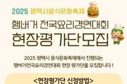 시민행정신문 기자 | 평택시는 오는 25일 농업생태원에서 ‘2025 평택시 음식문화축제’를 통해 ▲전국 요리경연대회 ▲평택 지역 맛집 및 세계음식 시식·체험관 ▲노 오븐 베이킹 체험관 ▲탄소중립 실천·홍보관 등 다채로운 부스가 운영돼 시민들에게 풍성한 경험을 선사할 예정이다. 전국 요리경연대회는 ‘평택의 맛, 나만의 아이디어로 버거를 완성하다’를 주제로 총 18팀(일반부 10, 가족부 8)이 본선에 진출해 열띤 경연을 펼친다. 지난해와 달리 참가 부문이 일반부와 가족부로 확대됐으며, 시상 규모도 10팀 740만 원으로 늘어나 큰 기대를 모으고 있다. 경연대회의 생생한 현장을 함께할 시민 현장평가단도 사전 모집한다. 10월 24일(금) 오전 9시부터 오후 5시까지 일반부와 가족부 각 20명씩 무작위로 선착순 접수받으며, 편식 없는 고등학생 이상이라면 누구나 신청할 수 있고, 선정된 지원자는 실제 경연 현장에서 요리를 맛보고 평가하게 된다. 또한, 오전 10시에는 빵과당신 인재홍(대한민국 제과명장)이 진행하는 베이킹 체험이 마련돼 있으며, 참가 신청은 24일(금) 오전 10시부터 평택예총 공식 블로그 및 평택시청