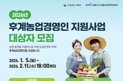 시민행정신문 이세훈 기자 | 담양군이 오는 2월 11일까지 ‘2026년 후계농업경영인 육성사업’ 대상자를 모집한다. ‘후계농업경영인 육성사업’은 농업 발전을 이끌어갈 유망한 예비 농업인과 농업경영인을 발굴해 일정 기간 자금·교육·컨설팅 등을 종합적으로 지원함으로써 정예 농업 인력으로 육성하는 사업이다. 영농교육을 이수하고 영농창업을 계획하거나 농업을 가업으로 승계하고자 하는 미래 농업 인력의 주축이 될 가능성이 높은 인재를 발굴하는 것을 목적으로 한다. 신청 대상은 18세 이상 49세 미만(1976~2008년도 출생자)으로, 영농 경력이 없거나 10년 미만인 농업인이다. 또한 대학의 농업 관련 학과나 농업계 고등학교를 졸업했거나, 시장·군수·구청장이 인정한 농업 교육기관에서 관련 교육을 이수한 경우에 한해 신청할 수 있다. 다만, 올해 산업기능요원 편입 대상자가 아닌 병역 미필자의 경우 군 복무를 완료한 이후에 자금 대출 신청이 가능하다. 사업 신청은 ‘농업e지’ 홈페이지를 통해 온라인으로만 가능하며, 마감일은 2월 11일 오후 6시 정각이다. 이후에는 신규