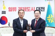시민행정신문 강갑수 기자 | 대전시는 10일 시청 응접실에서 김광철 대전광역시버스운송사업조합 이사장에게 대중교통 발전 유공 공로패를 수여했다. 이날 행사에는 이장우 대전시장, 교통국장, 버스운송사업조합 임직원 등 15여 명이 참석해 김광철 이사장의 오랜 헌신에 감사를 전했다. 김광철 이사장은 1977년 운수업계 입사 이후 48년간 시내버스 발전을 위해 헌신해왔으며, 2010년 제13대 이사장 취임 이후 15년간 조합을 이끌며 대중교통 발전과 시민 교통편의 증진에 기여해 왔다. 특히 시내버스 노선 전면 개편과 증차를 통해 교통약자의 이동권을 보장하고, 무료 환승 확대와 교통카드 도입 등 안전하고 쾌적한 시내버스 환경 조성을 위해 노력해왔다. 이장우 대전시장은 “김광철 이사장께서는 수십 년간 묵묵히 헌신하며 대중교통의 신뢰와 품격을 높이는 데 큰 역할을 하셨다”라며 “앞으로도 시민의 하루를 응원하는 따뜻하고 안전한 대중교통 환경을 만들기 위해 시에서도 최선을 다하겠다”라고 말했다.