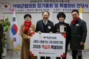 시민행정신문 기자 | 부여군의회는 21일 대한적십자사봉사회 부여군협의회 정기총회에서 2026년도 대한적십자사 특별회비 전달식을 가졌다. 이날 전달식에는 박순화 부의장을 비롯해 서정호 총무위원장, 장소미 산업건설위원장 등 부여군의회 의원들이 참석해 나눔의 뜻을 함께했다. 군의회는 이번 특별회비 전달을 통해 재난·재해 발생 시 긴급구호와 취약계층 지원, 지역사회 복지 증진 등 적십자 인도주의 활동을 지속적으로 뒷받침하겠다는 뜻을 전했다. 특히 매년 적십자 특별회비 전달에 적극 동참하며 나눔과 연대의 가치를 꾸준히 실천해 오고 있다. 박순화 부의장은 “적십자 특별회비가 생계와 건강, 주거 등으로 어려움을 겪는 우리 주변 이웃들에게 작지만 따뜻한 희망이 되기를 바란다”며, “부여군의회도 군민과 함께 나눔 문화 확산에 앞장서 지역사회에 온기가 이어질 수 있도록 노력하겠다”고 말했다.