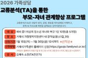 시민행정신문 강갑수 기자 | 거제시가족센터는 오는 2일부터 진행하는'교류분석(TA)을 통한 부모–자녀 집단상담 프로그램' 참여자를 모집한다고 밝혔다. 프로그램 주요 내용은 자아상태검사, 부모-자녀 간 의사소통 패턴 이해하기, 갈등 상황에서 안정적인 대화법 등으로 청소년의 마음 성장과 가족관계 회복을 지원하는 데 목적이 있다. 모집 대상은 예비 중학생 이상의 청소년 자녀와 양육자 5가정이며, 거제시가족센터 홈페이지를 통해 신청‧접수 가능하다. 자세한 문의는 거제시가족센터로 하면 된다. 류주진 센터장은 “방학은 가족이 서로를 이해하고 관계를 돌아볼 수 있는 좋은 시기”라며 “부모와 아이가 한 걸음 더 가까워지는 시간이 되길 바란다”고 밝혔다.