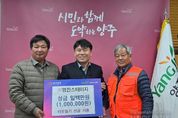 시민행정신문 강갑수 기자 | ㈜영진스테이지는 지난 27일 양주시 남면행정복지센터를 방문해 지역 내 어려운 이웃을 위한 이웃돕기 성금 100만 원을 전달했다. 남면 상수리에 위치한 ㈜영진스테이지는 특수조명·무대기계장치·호텔 연회장 설비 등 무대기술 분야 전문기업이다. 이날 기부식에는 김동현 ㈜영진스테이지 대표, 백운구 남면장, 김영권 남면 지역사회보장협의체 공동위원장이 참석해 따뜻한 나눔의 의미를 함께 했다. 기부금은 사회복지공동모금회를 통해 남면 관내 취약계층을 위해 사용될 예정이다. 김동현 대표는 “지역에서 받은 사랑을 다시 지역에 돌려드리고 싶었다”며 “작은 도움이지만 어려운 이웃들에게 힘이 되기를 바란다”고 전했다. 백운구 남면장은 “지역 기업의 따뜻한 참여가 큰 힘이 된다”며 “소중한 성금이 꼭 필요한 분들께 전달되도록 최선을 다하겠다”고 말했다. 김영권 공동위원장 역시 “협의체는 민관이 함께 복지 사각지대를 살피고 지원하는 역할을 하고 있다”며 “이런 뜻깊은 나눔이 더 많은 이웃들에게 희망이 되기를 기대한다”고 전했다. 남면은 앞으로도 지역 기업 및 단체와의 협력을 통해 지속적
