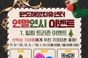 시민행정신문 강갑수 기자 | 완도군은 연말연시를 맞아 군민과 관광객이 완도해양치유센터에서 힐링할 수 있도록 다양한 이벤트를 추진한다. 먼저 방문객들이 사진으로 ‘완도’와 ‘해양치유’를 추억할 수 있도록 센터에 힐링 트리존을 조성했다. 힐링 트리존에서 사진을 찍은 후 개인 SNS에 해시태그(#완도해양치유센터)와 함께 사진을 업로드하면 선착순 100명에게 기프티콘을 증정하는 이벤트를 진행한다. 해양치유센터 1, 2층에 숨겨진 산타 스티커를 찾아 안내 데스크에 제출하면 선물을 주는 ‘산타를 잡아라!’ 이벤트도 준비했다. 두 가지 이벤트는 12월 3일부터 시작된다. 12월 24일부터 27일까지는 해양치유 프로그램과 연계한 감성 있는 연말 분위기를 즐길 수 있도록 ‘크리스마스 원데이 클래스’도 운영한다. 원데이 클래스는 ▲‘완도호랑가시’를 활용한 트리 만들기(24일) ▲다시마 반죽으로 과일 모찌 만들기(25일) ▲비파 비누·캔들 만들기(26일), ▲유자 케이크 만들기(27일) 등 완도 특산물을 활용한 체험과 해양치유(기본2) 프로그램을 연계했다. 참가 방법은 12월 1일부터 22일까