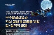 시민행정신문 이세훈 기자 | 경상국립대학교(GNU·총장 권진회) 법과대학은 11월 28일 오후 1시 가좌캠퍼스 법과대학 대경학술관 1층 모의법정실(252동 101호)에서 ‘우주항공산업과 혁신 생태계 창출을 위한 법·정책적 과제’라는 주제로 경상국립대학교 법학연구소, 한국항공우주정책·법학회와 공동학술대회를 개최한다. 이번 학술대회는 경상국립대학교 경남우주항공방산과학기술원(GADIST)이 후원한다. 행사에는 권진회 총장을 비롯해 조성제 법과대학장, 이근영 학회장(한국항공우주정책·법학회), 박성민 법학연구소장 등 내빈과 발제자, 토론자, 전문가 패널이 참석한다. 행사는 내빈 소개, 인사말, 축사, 제1부 항공법 정책 세션, 제2부 우주법 정책 세션 순으로 진행된다. 제1부는 박준영 교수(경상국립대학교 법학부장)의 사회로 ‘항공법 정책’을 주제로 한 발표가 이뤄진다. 박하나 박사(국립창원대)는 ‘UAM 버티포트 조성을 위한 법제 정비와 정책적 과제’를, 이강석 교수(한서대)는 ‘ICAO 항공보안 정책의 한국화 전략’을 주제로 발표한다. 이어 김성미 교수(순천대), 서지민 교수(부산대), 송주영 교수(경상국립대), 이창재 교수(조선